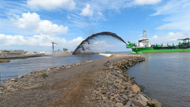 • Construção de terminais portuários, terminais marítimos, cais, infraestruturas rodoviárias e ferroviárias.