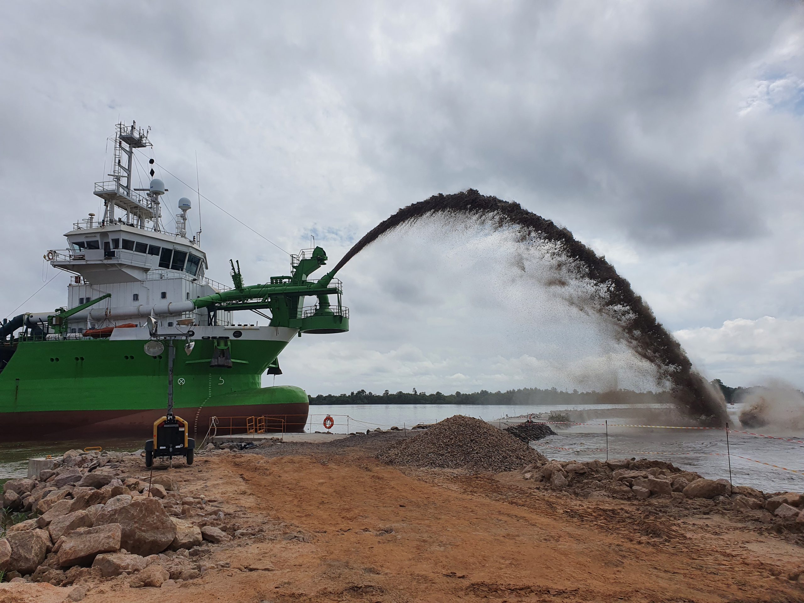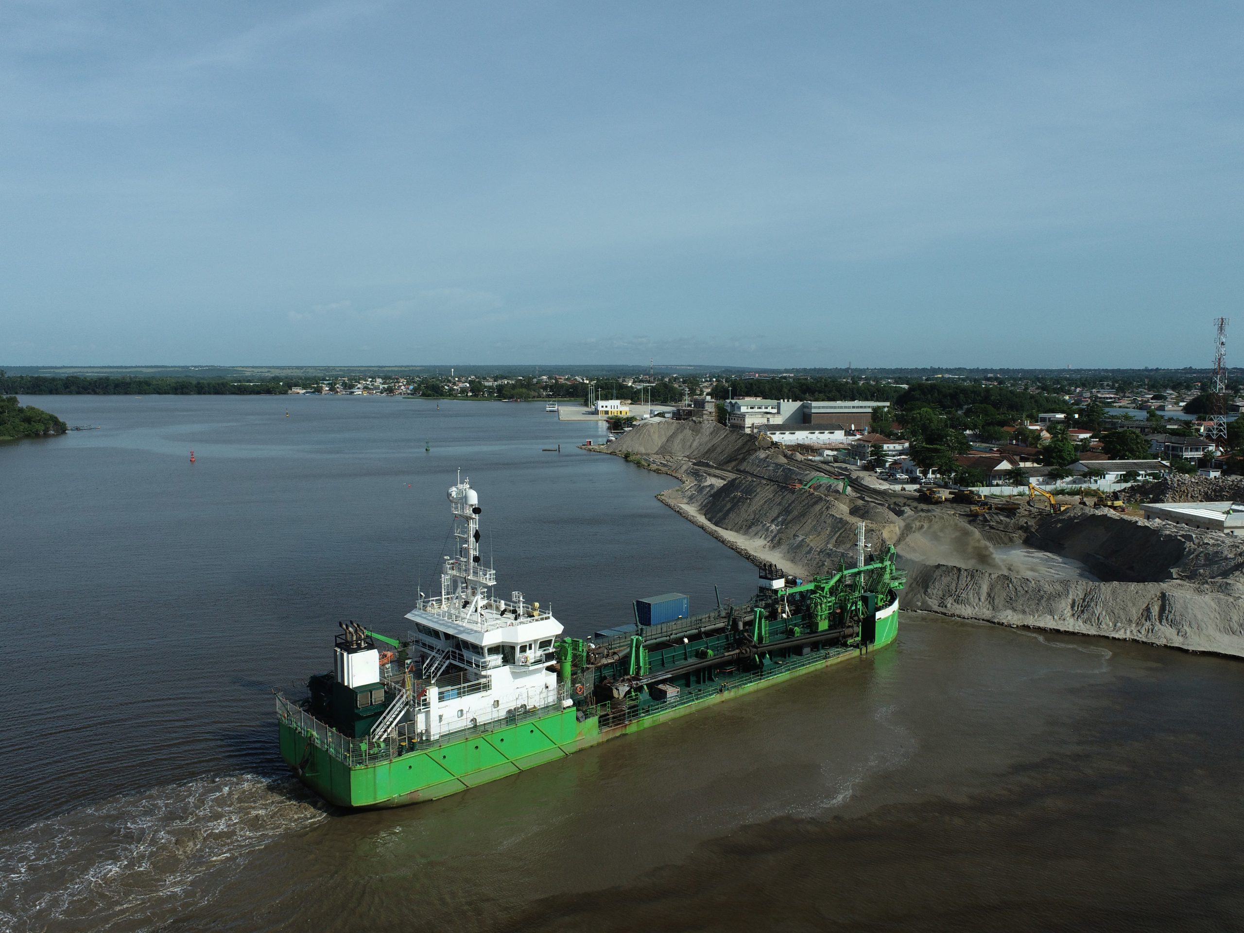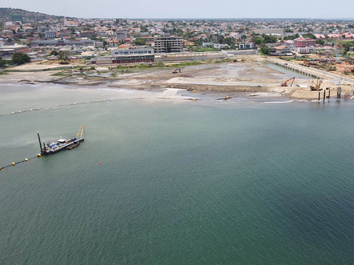 Execução dos trabalhos de dragagem em Cabinda, uma intervenção estratégica para a melhoria das condições de navegabilidade e reforço das infraestruturas marítimas da região.