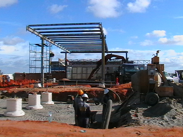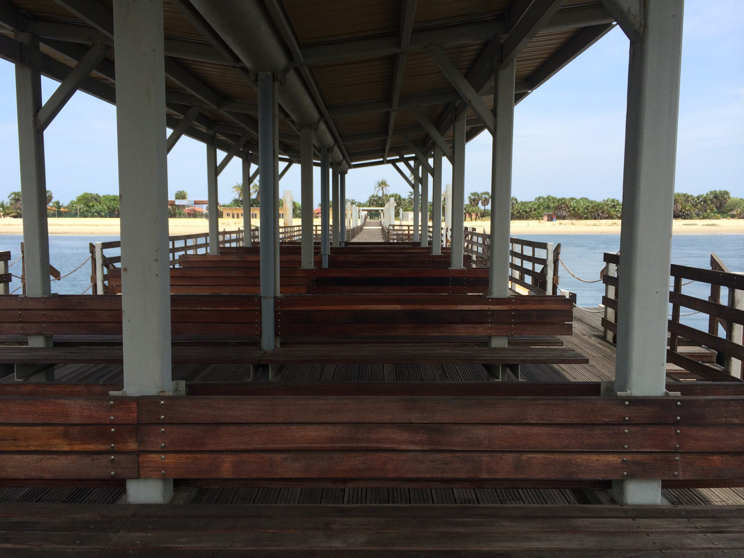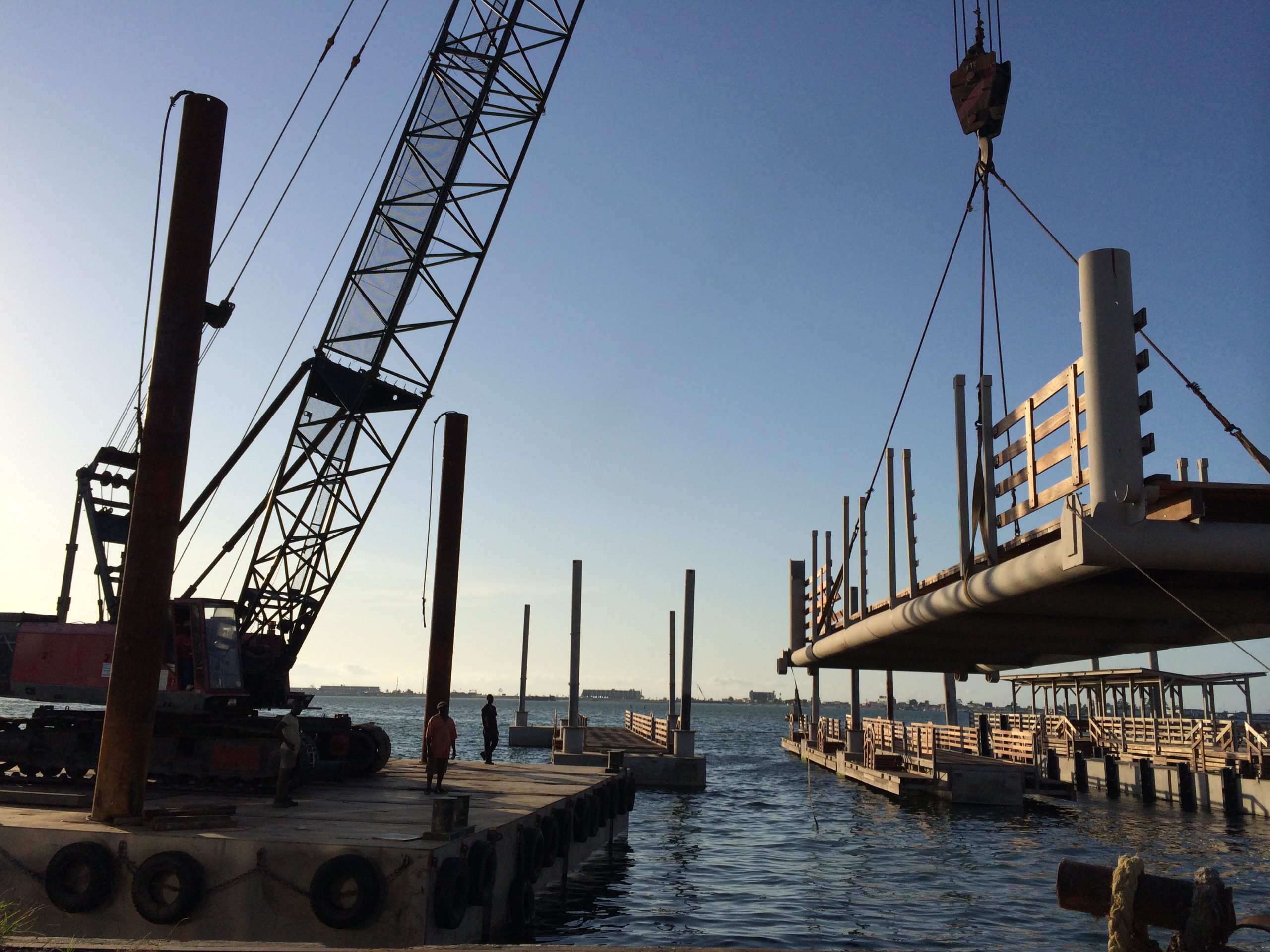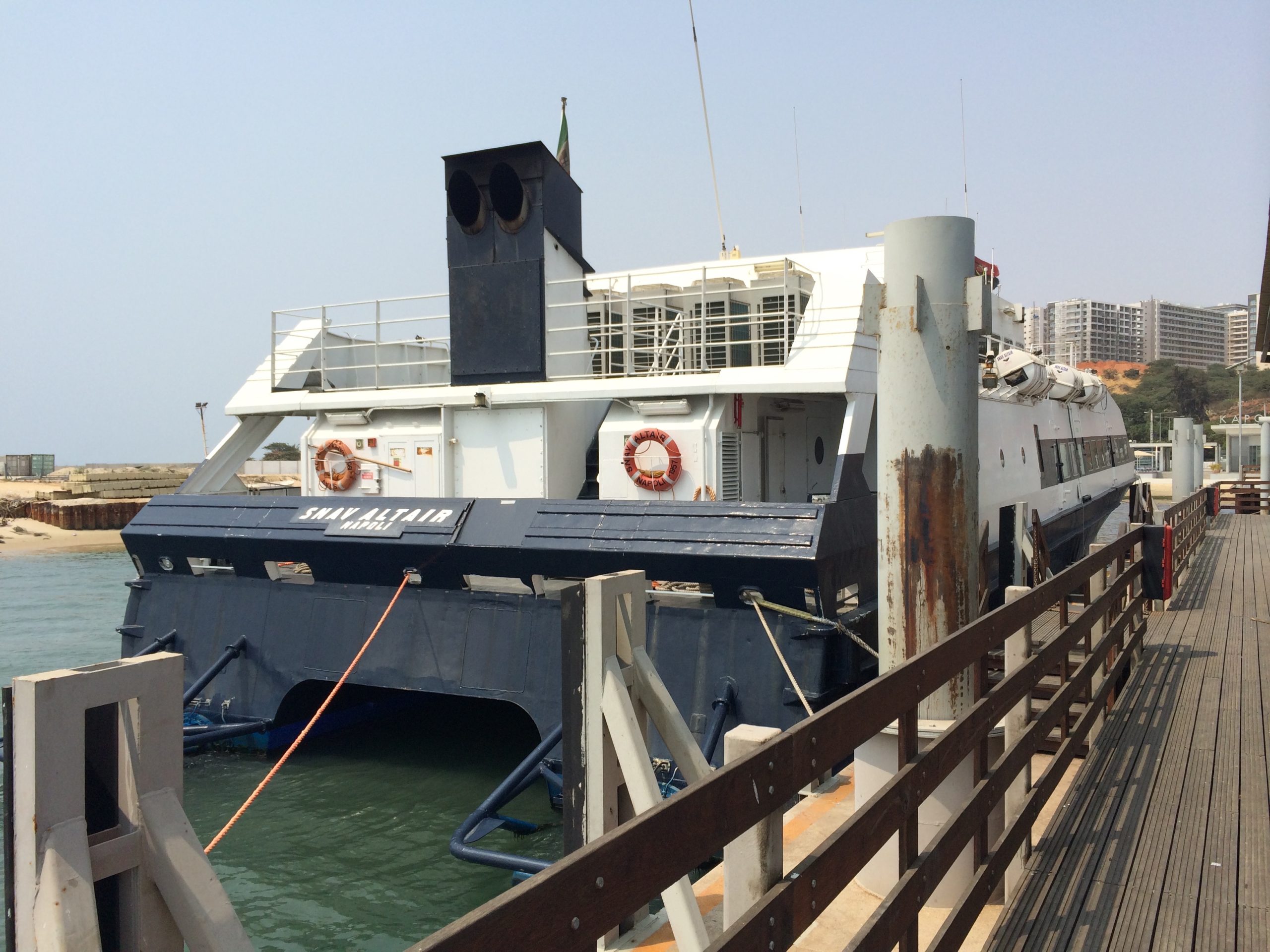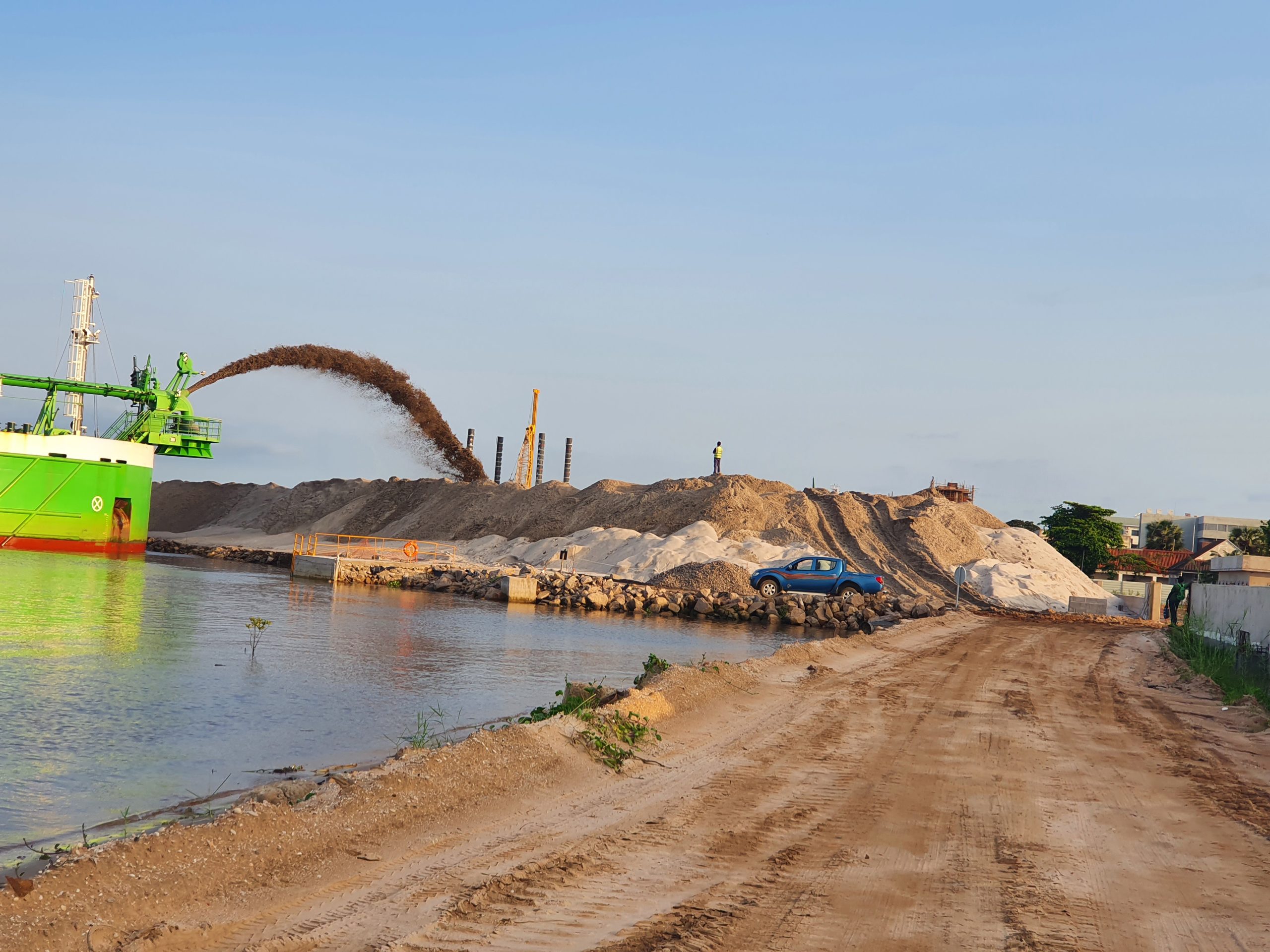 Construção do terminal marítimo de passageiros no Mussulo, em Angola — uma infraestrutura essencial que garante a ligação entre o continente e a ilha.