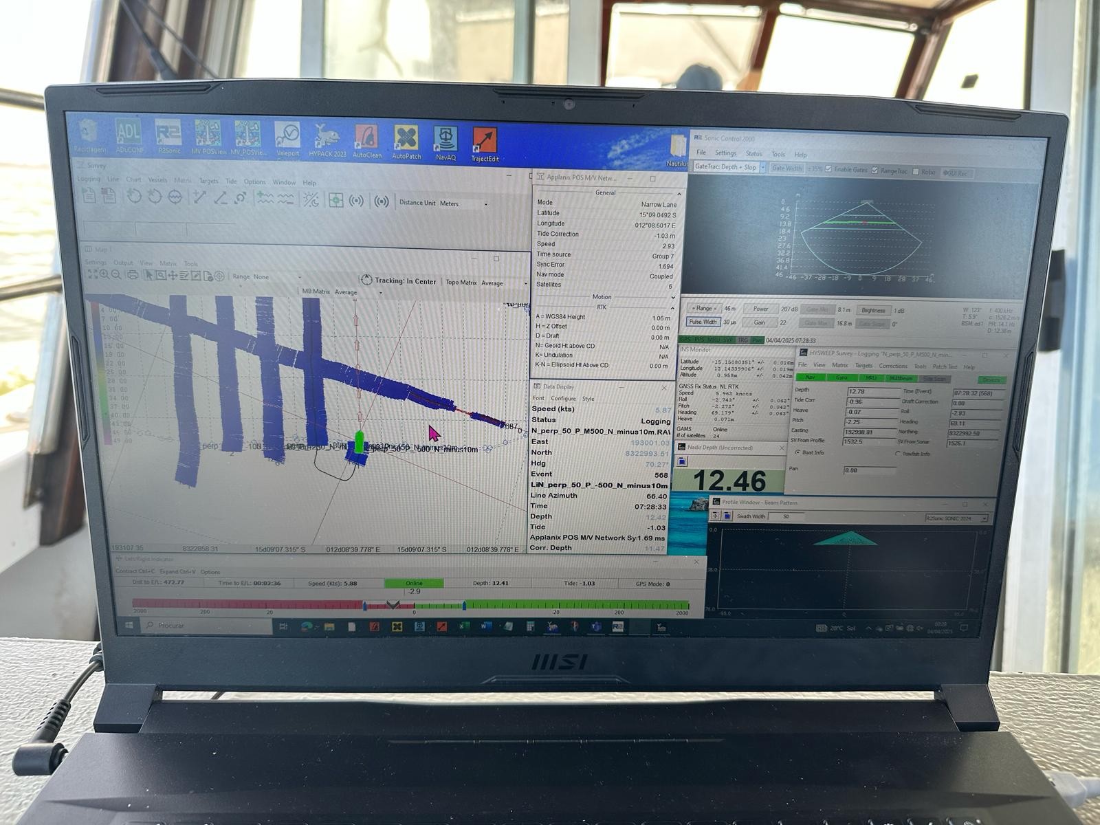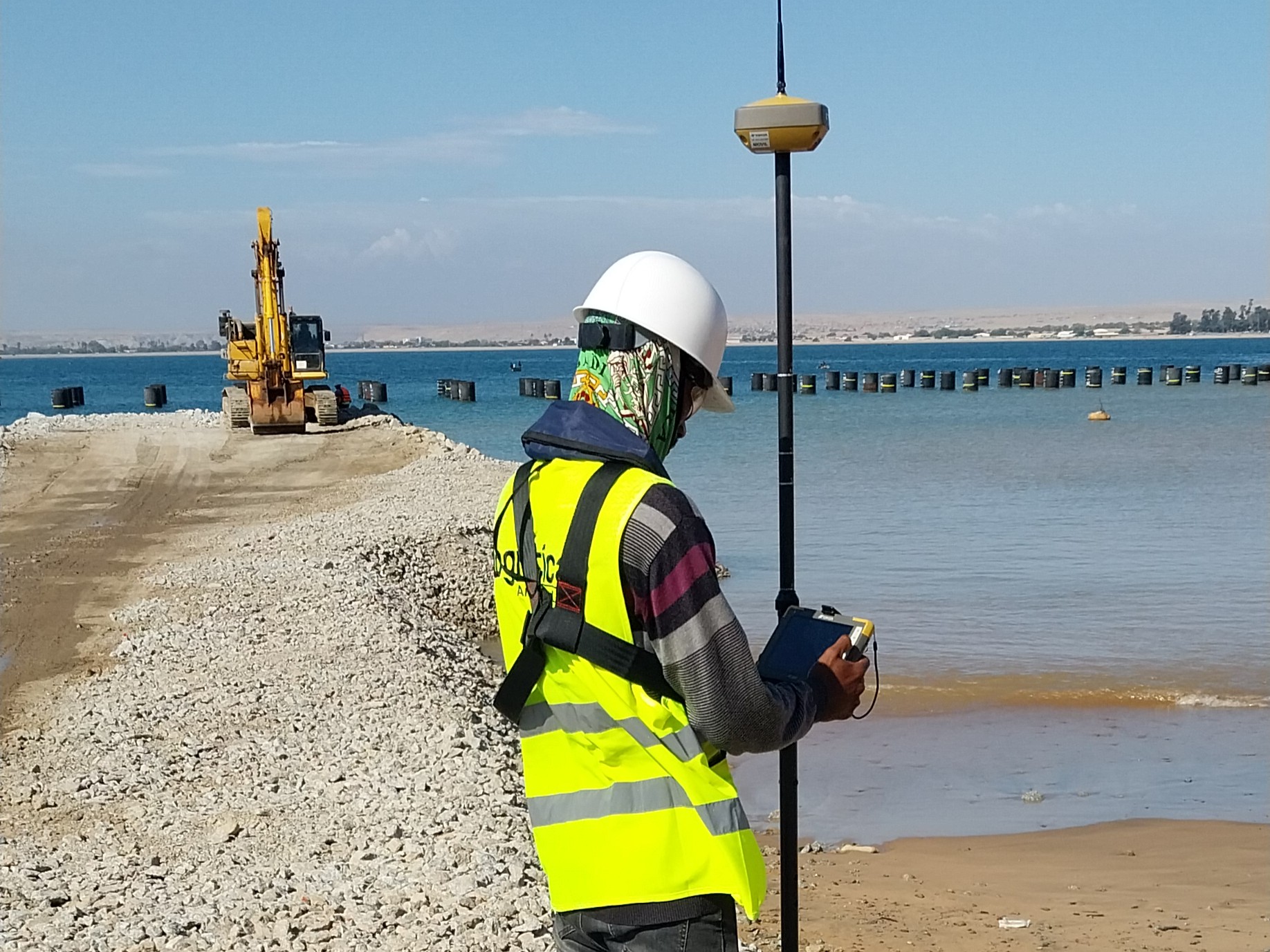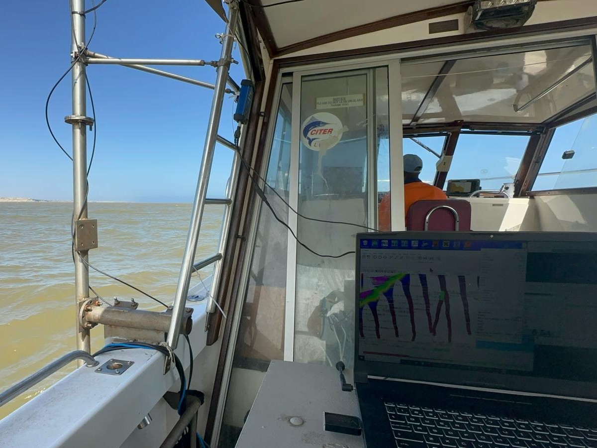 Levantamento batimétrico na Baía do Namibe, incluindo mapeamento do fundo marinho, processamento de dados e geração de relatórios técnicos.