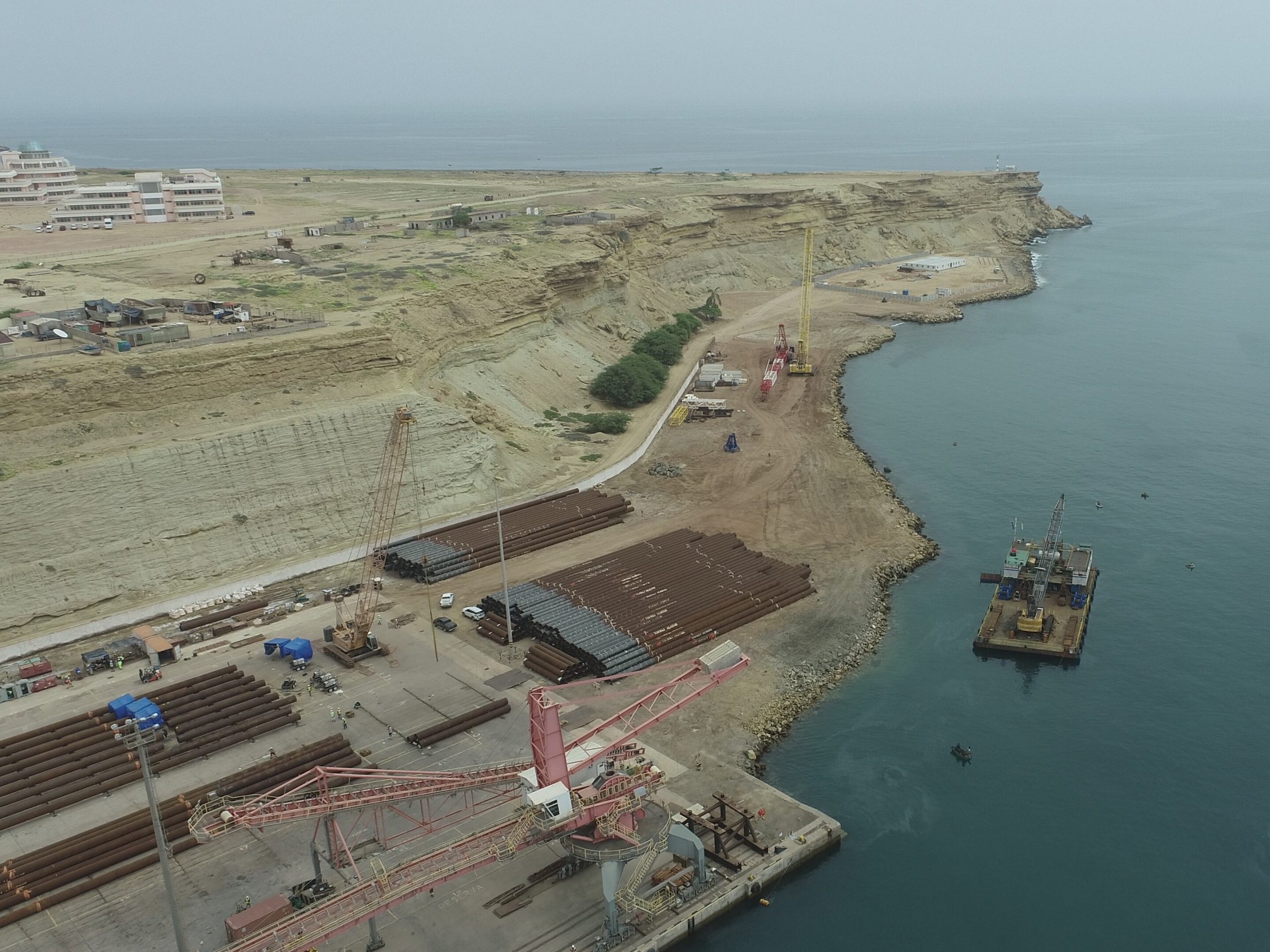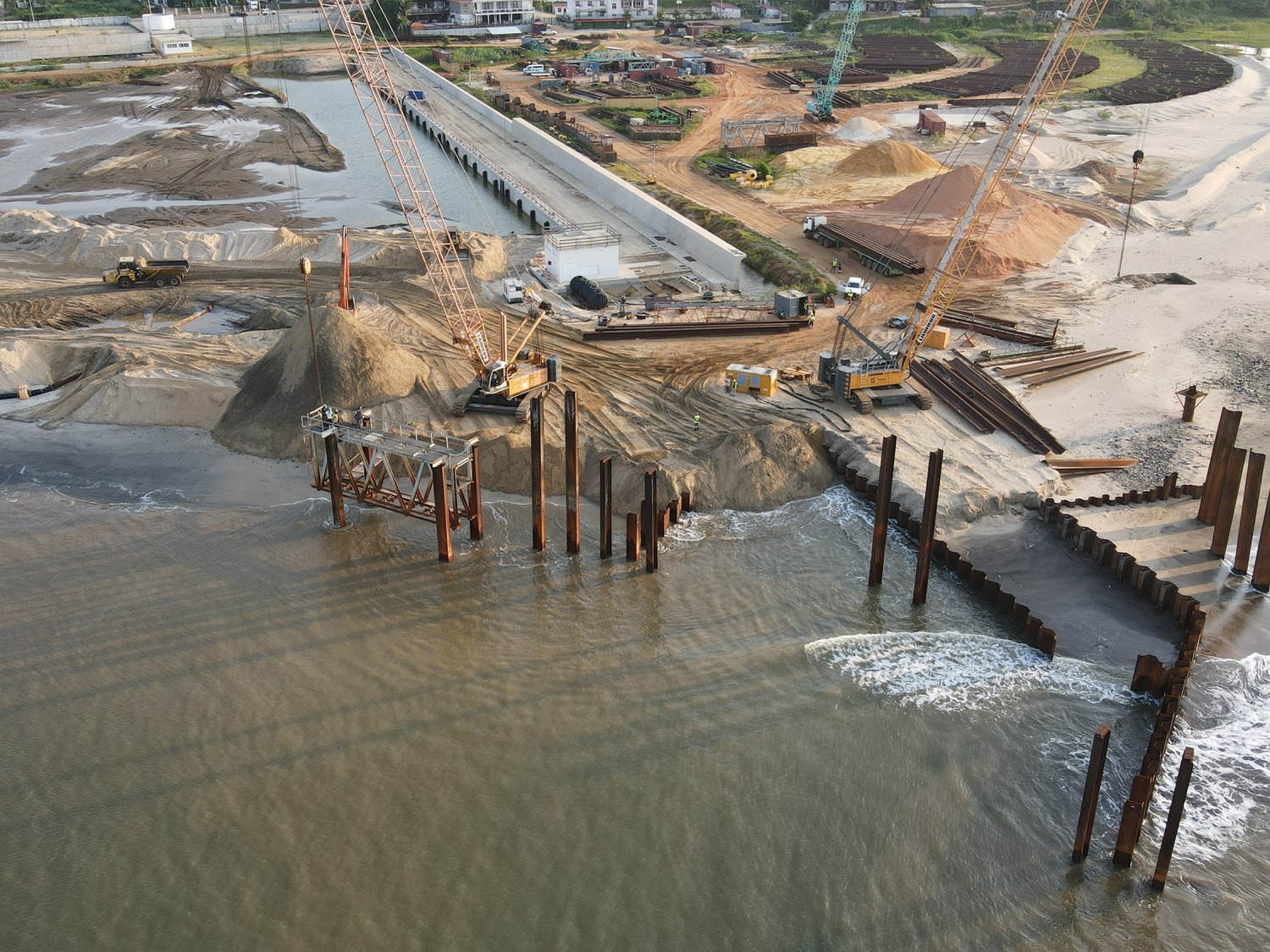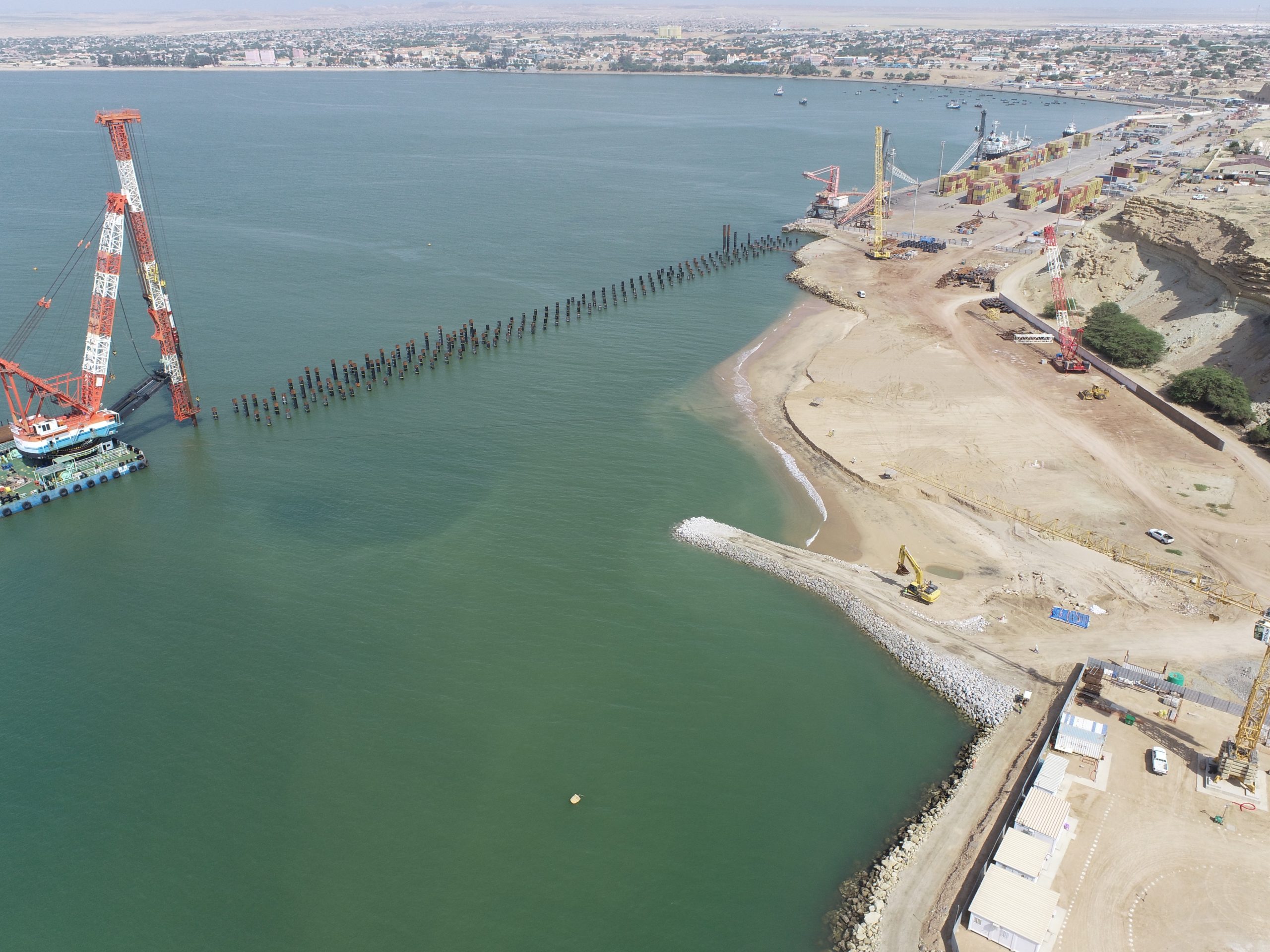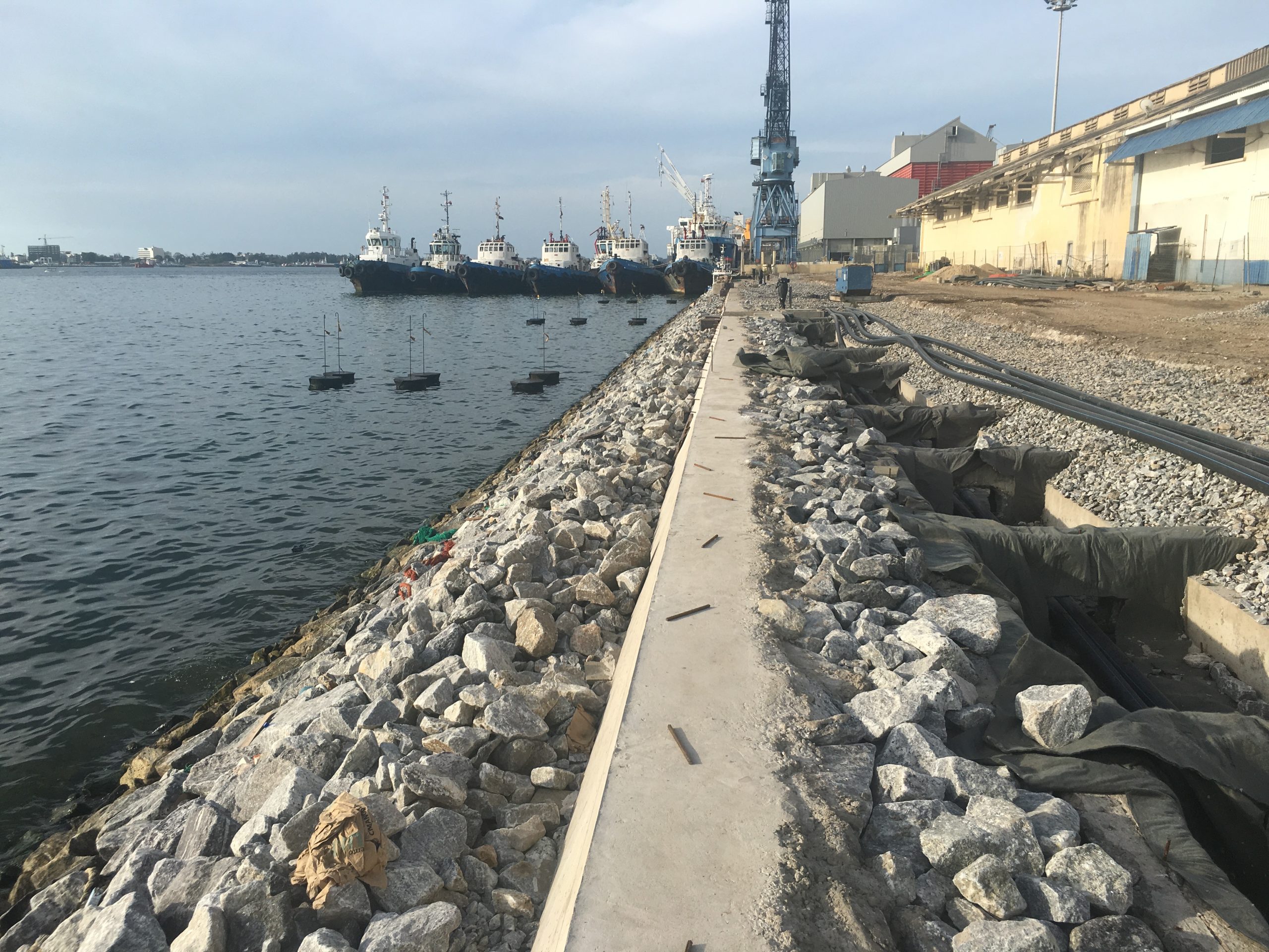 Execução das obras de construção do Porto de Cabotagem de Luanda, contribuindo para o desenvolvimento das infraestruturas portuárias e operações logísticas.