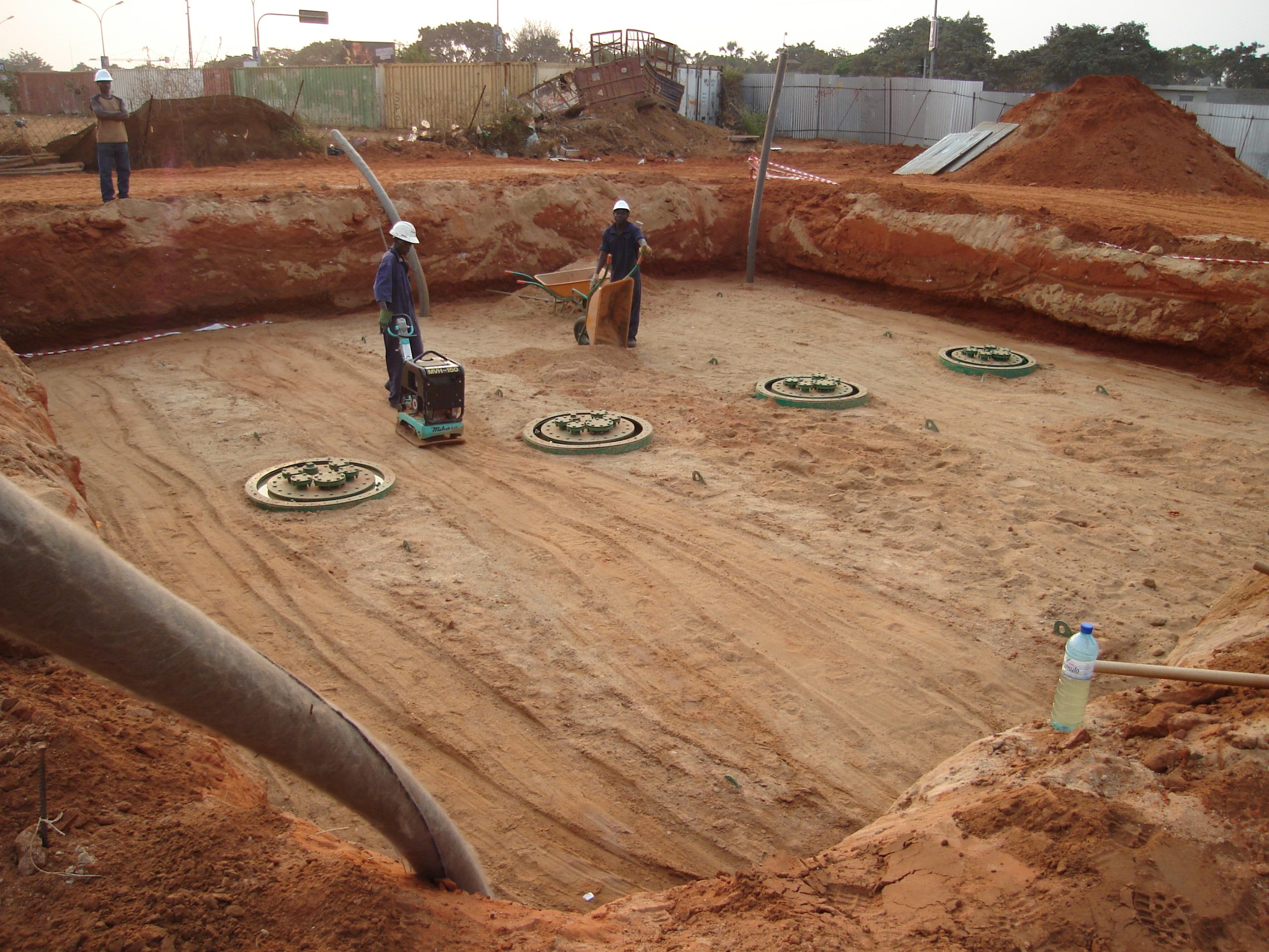 Construção da Ravina Rei, no Cuito Cuanavale, em Angola, obra realizada no âmbito do reforço das infraestruturas e desenvolvimento local.