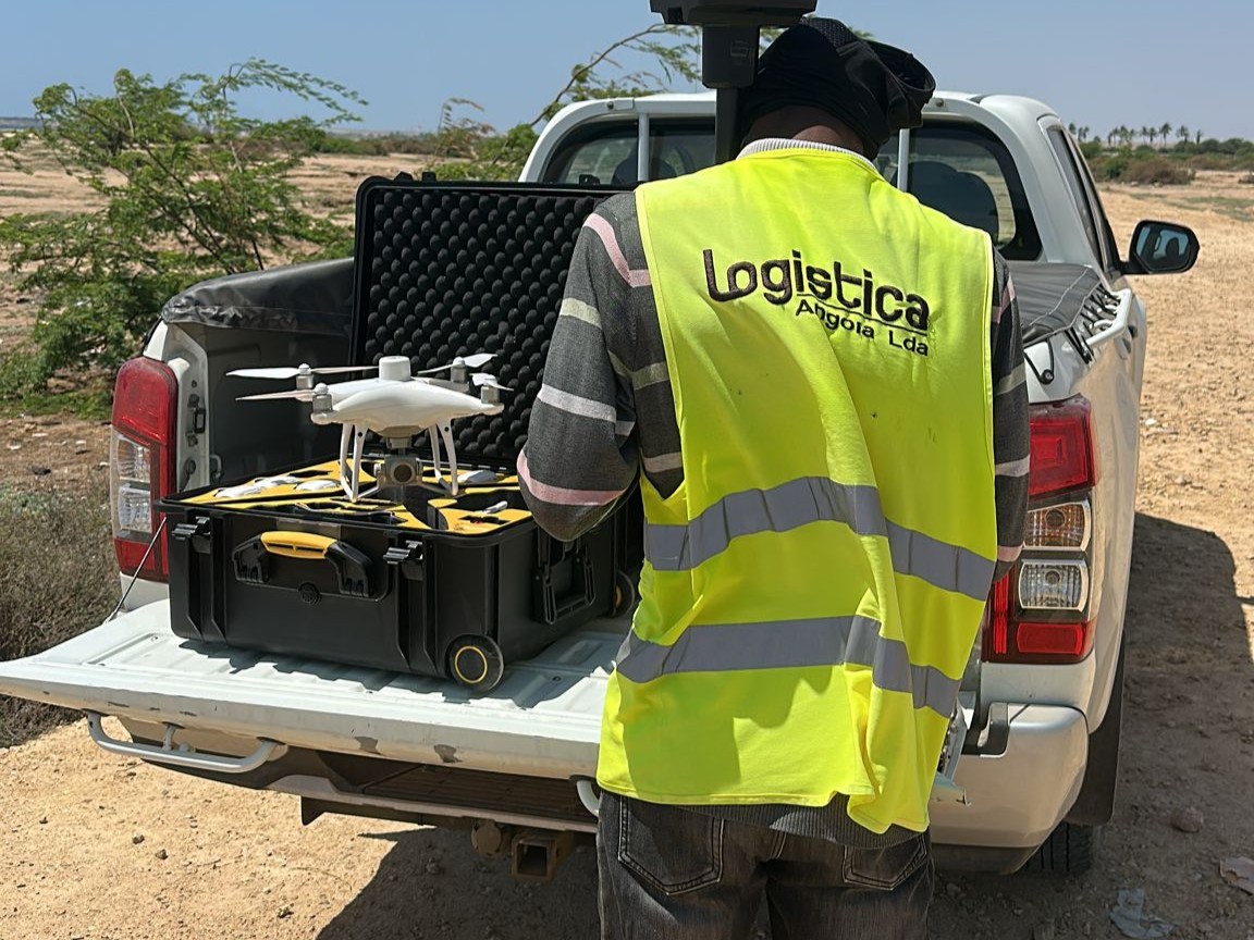 Levantamentos aéreos com drones no Namibe, incluindo modelação 3D, ortofotomapas e acompanhamento técnico de obra.